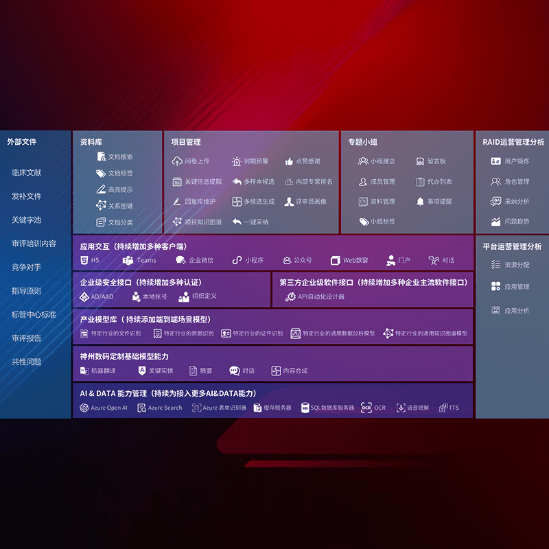 医疗器械产品上市前,,,,要熟悉严格与繁复评审标准,,整理分析监管机构指导文件中的海量信息。。。。企业急需一个智能化解决方案,,,提升知识管理效率,,,,提高评审通过率,,以提升其市场竞争力。。